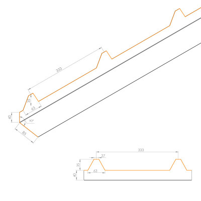 Closoir cranté de 2100 mm pour la finition du bas de pente des panneaux sandwich de couverture isoleé Quadcore KS1000RW.Acier laqué revêtement polyester 25 µm.Grande tenue dans le temps.Prévoir 1 à 2 vis par mètre linéaire.